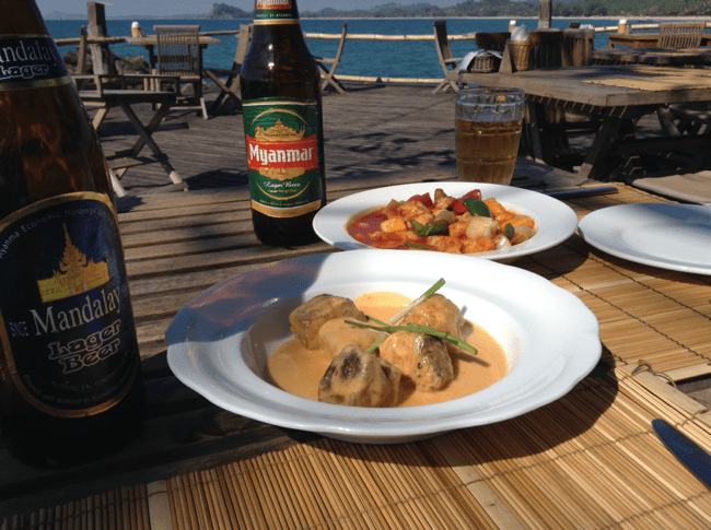 We’ve eaten lunch on both the beach and the road; the road restaurants during the day are pretty hot so we opted for that just once so far. Today we made a second trip to our favorite beach lunch spot, called Pleasant View Islet, and it’s not only for the view – the food is tasty, too. Sweet and sour fish features whatever was pulled from the ocean in the morning in a tangy red sauce with pineapple, tomato, and red and green peppers. We also had “crispy fish in chili sauce with some coconut milk” on both days.