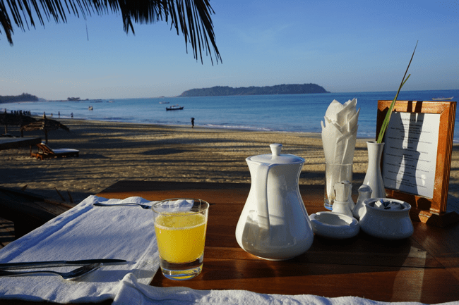 When it comes to mealtime, tourists here have three dining options: hotel, beach, or road. All of them offer something appealing. Since breakfast is included with our room rate, we’ve opted to eat at our resort every morning. And with a view like this, why wouldn’t we?