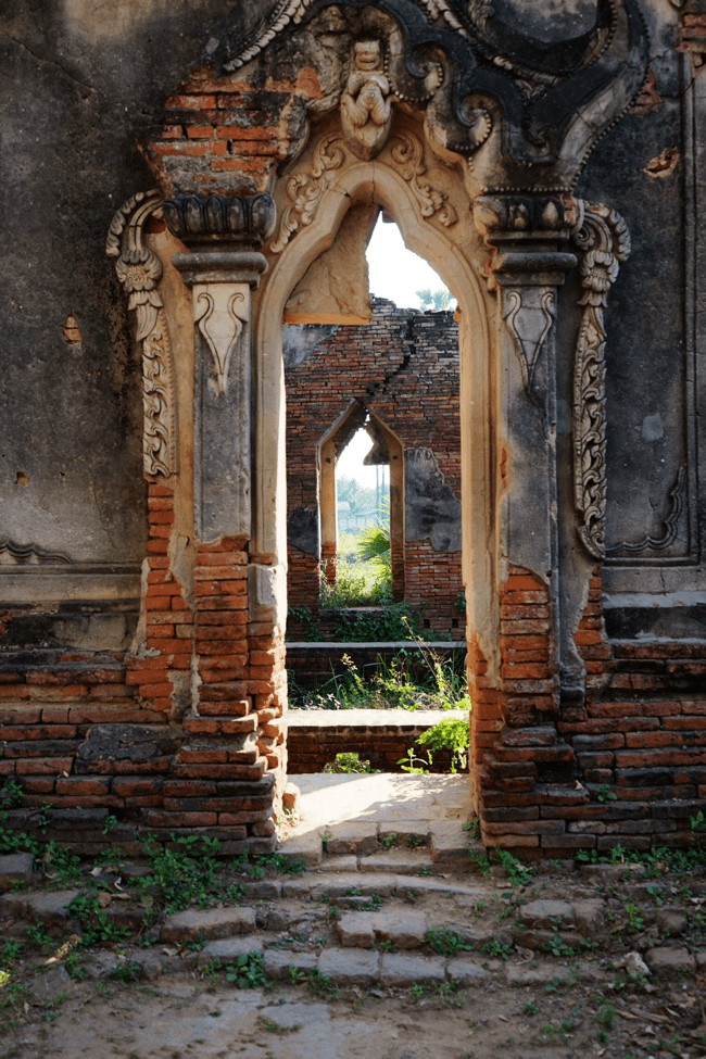 Our first stop was at the “leaning tower,” which is all that remains of a former royal complex. Though there are stairs on the side, Myo didn’t extend the invitation to climb up, so I assume it’s now closed or perhaps unsafe (though considering our walk across the train bridge, it’s hard to ascertain where the unsafe barometer is here!).