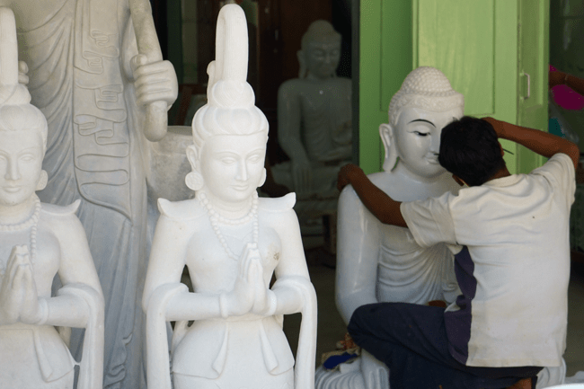 There’s also a street not far from here where a line of workshops create Buddha images out of marble, which is mined in Myanmar.