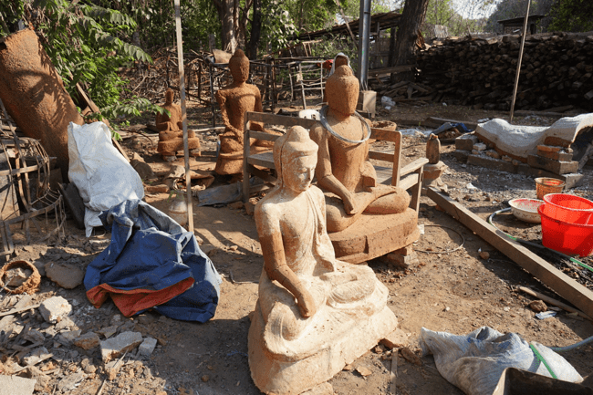 We then visited a workshop where bronze Buddha images are made entirely by hand (and are supposedly some of the finest of their kind in the world and can be found in temples and monasteries around the globe). These are examples of the mud and straw molds that are constructed from scratch every time a new image is made; between two layers of this lies a very detailed wax mold, which is what the heated bronze surrounds to create the final product.